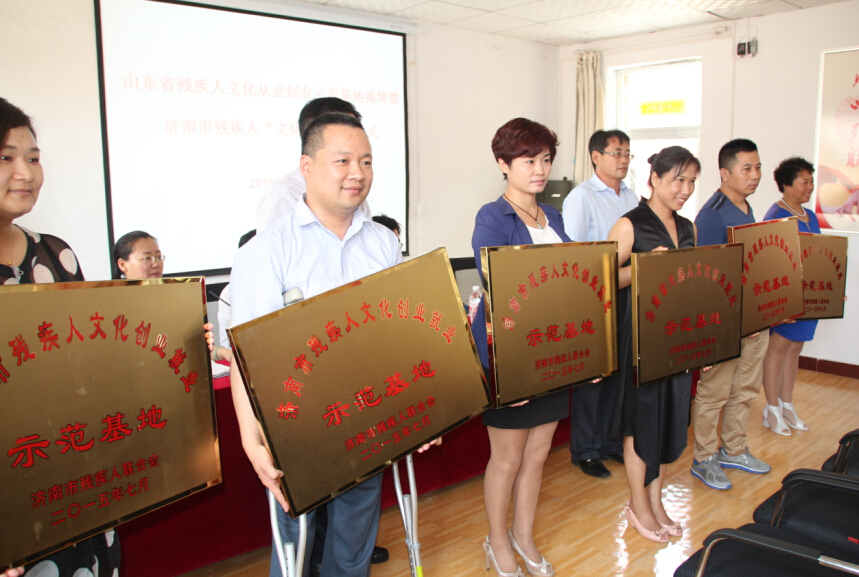 7月13日,“山东省残疾人文化从业创业示范基地暨济南市残疾人文化创业就业示范基地”揭牌活动在平阴绿泽画院举办,同时济南市残疾人文化周活动正式启动。我公司等6家企业成为首批“济南市残疾人文化创业就业示范基地”。