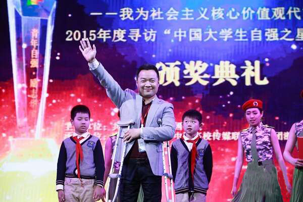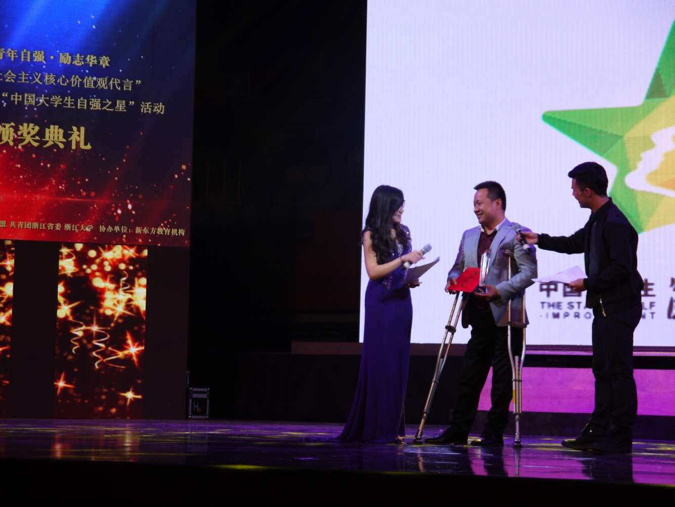 由共青团中央和全国学联主办,中国青年报社和中国高校传媒联盟承办的2015年度“中国大学生自强之星”颁奖典礼于2016年3月31日在浙江大学隆重举行。江南在线注册董事长、山东中医药大学2015级中医医史文献学博士研究生王勇从18025名报名者中脱颖而出,荣获“中国大学生自强之星”标兵,并受邀参加了此次颁奖典礼。