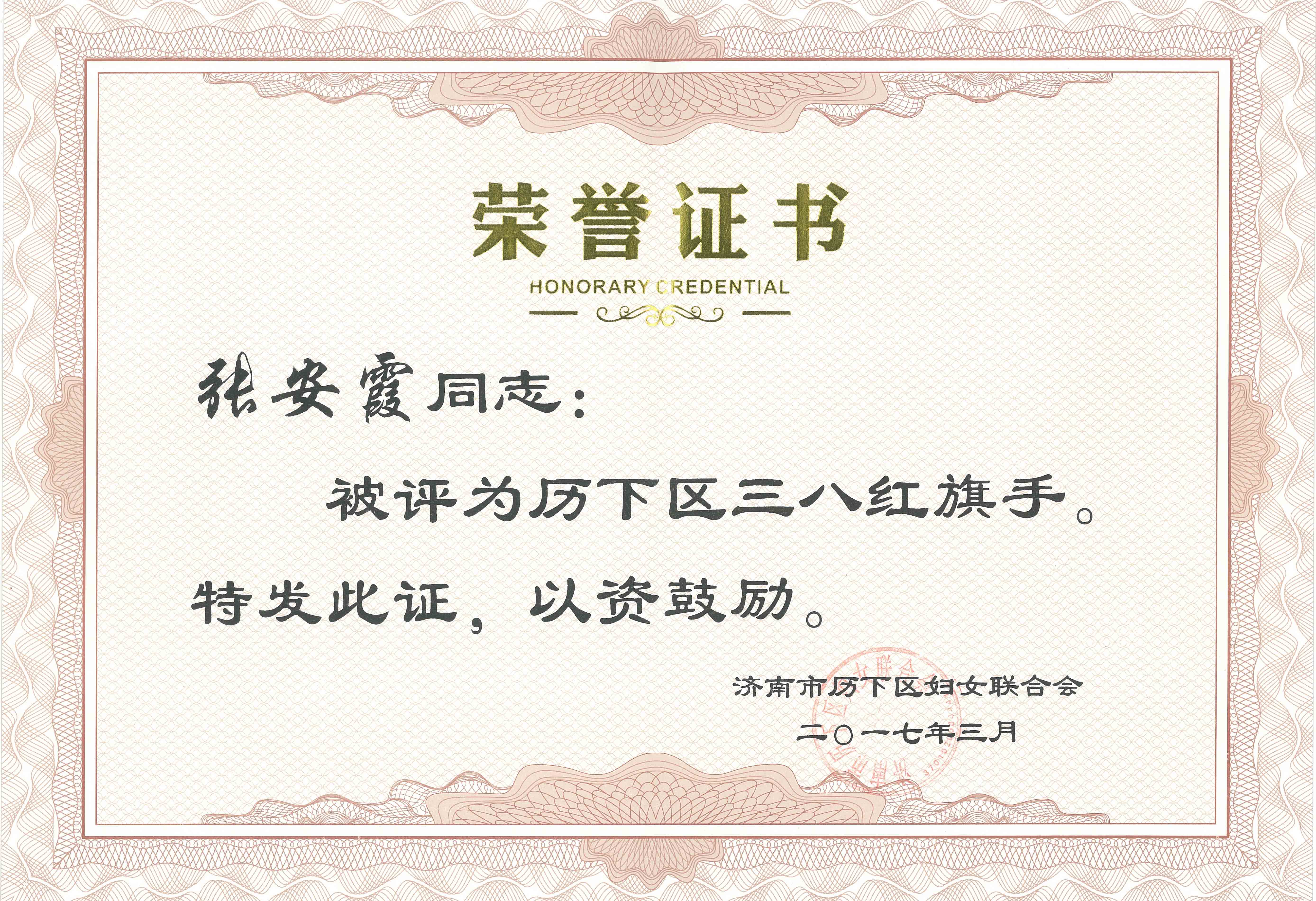 祝贺我集团员工张安霞获得历下区“三八红旗手”称号