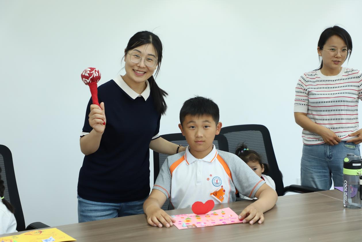 孩子们将自己亲手制作的艾草锤与祝福贺卡送给妈妈,