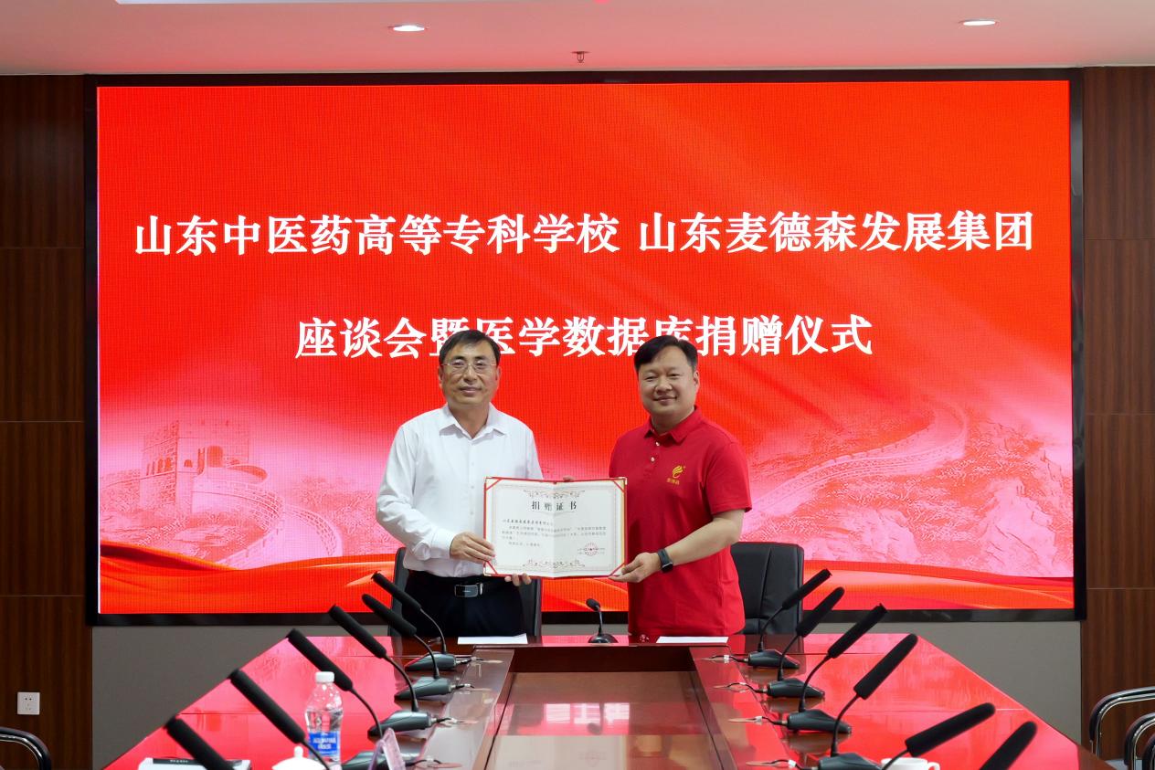 日前,山东麦德森发展集团与山东中医药高等专科学校座谈会暨医学数据库捐赠仪式在山东中医药高等专科学校综合办公楼第一会议室顺利举行。