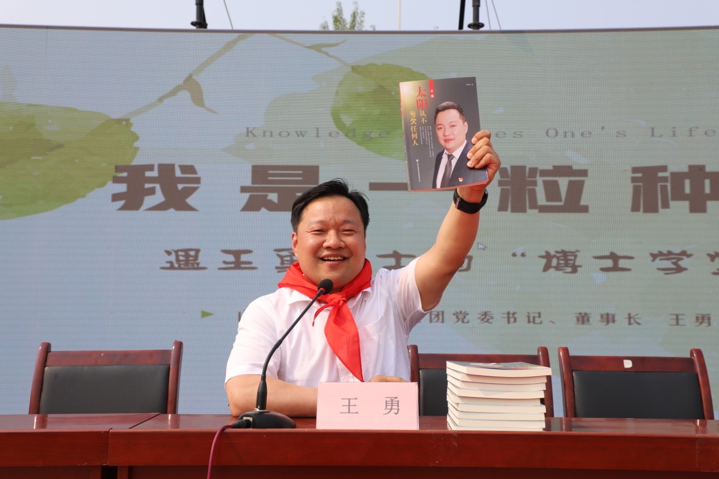 活动现场,王勇书记以《我是一粒种子》为主题进行公益宣讲。他结合自身创业经历激励学生追逐梦想,并为10名优秀学生代表签名赠予个人传记《太阳从不亏欠任何人》。