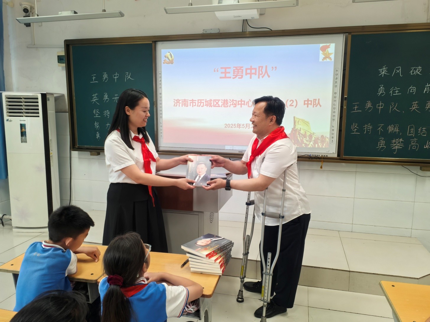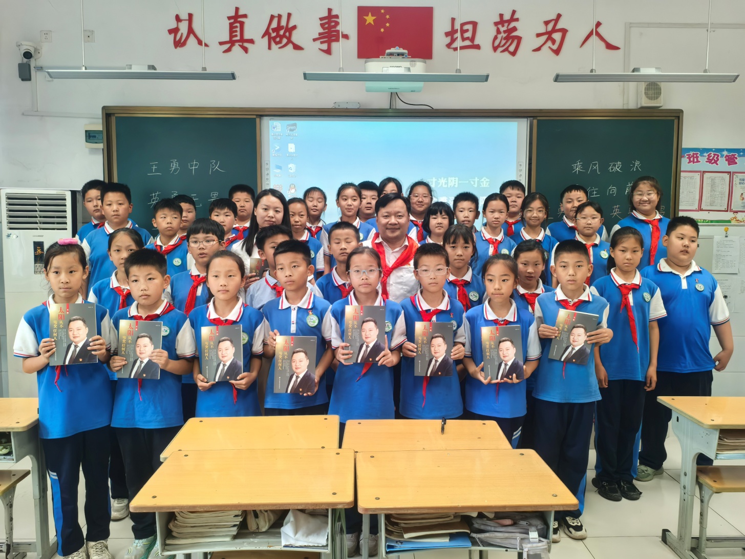 课堂之外,思政教育延伸至广阔天地。队员们化身“小农夫”参与“采摘节”,俯身劳作体会“粒粒皆辛苦”;美术社团书画翰墨飘香,劳动实践基地硕果盈枝。在“校外中队辅导员进班级”环节,排爆英雄张保国、书画艺术家袁敏、麦德森集团党委书记王勇分别走进班级,开展互动交流、赠书活动,将榜样力量融入日常学习。