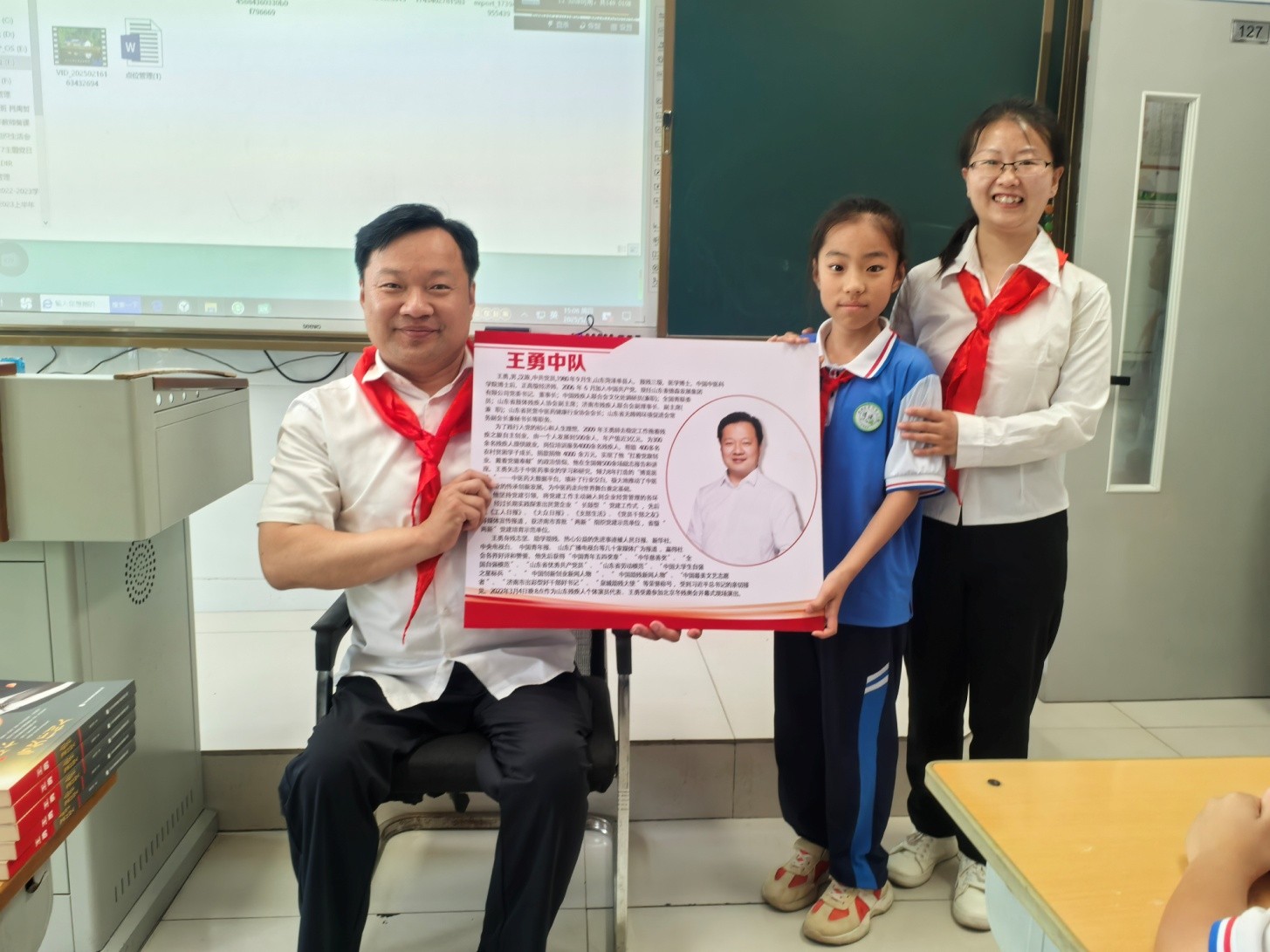 活动现场,“王勇中队”“张保国中队”“董丹中队”三个英雄中队正式命名。王勇书记同全国最美警察、一级英模张保国,文化传承者董丹等校外辅导员从孔凡翼校长手中接过聘书;英雄们走进班级,以亲身经历讲述奋斗故事,为少先队员树立了可触可感的榜样标杆。