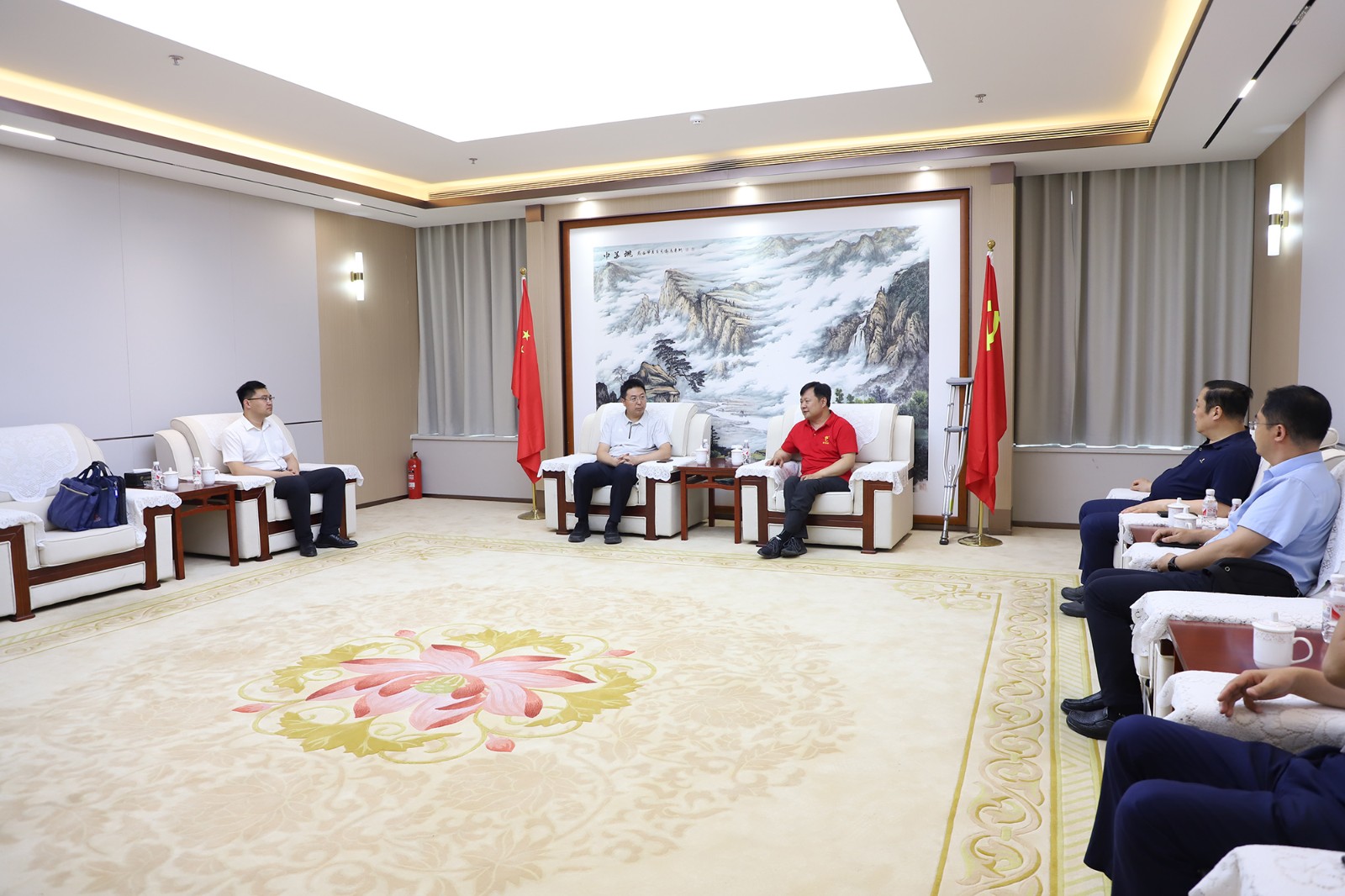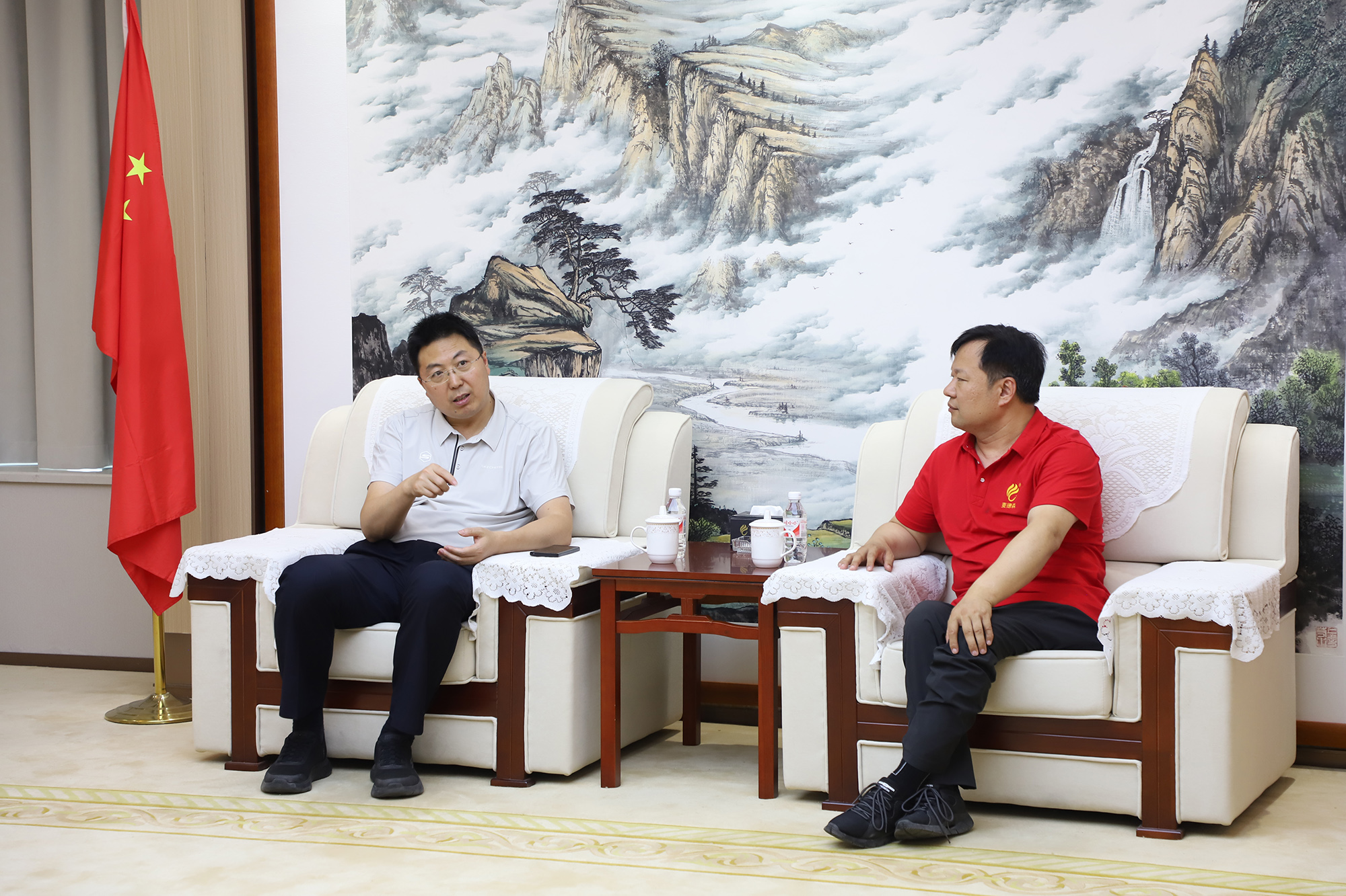 山东麦德森发展集团党委书记、董事长王勇,执行董事王兴法,麦德森文旅总经理王津津参与会谈。