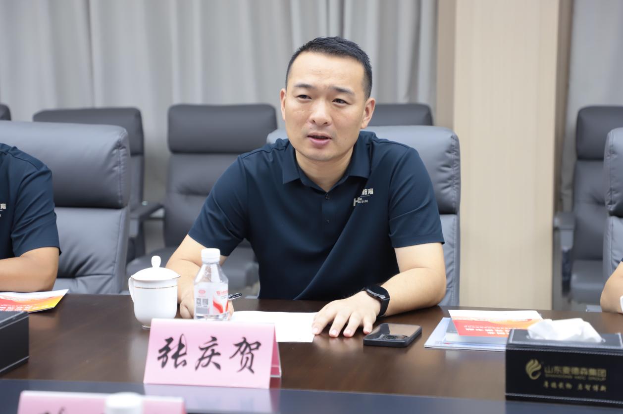 海浪教育集团董事长张庆贺在讲话中对麦德森党建引领企业高质量发展的体制机制、积极致力于扶残助残的公益情怀给予了充分认可与肯定,并介绍了海浪教育集团业务范围、发展历程、以及在党建公益方面取得的成果。他指出,未来,希望以此次调研为契机,双方能够深化党建共建,深入探索交流合作方向,开展多层次、多方位的长远战略合作。