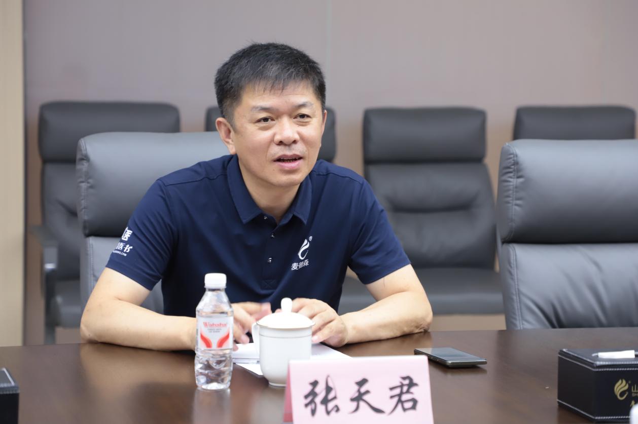 张天君总经理详细介绍了麦德森发展历程、各产业板块建设及企业未来规划等情况。他表示,麦德森作为党建引领下的民营企业,始终坚持党的领导,以“长鼓型”党建工作式助推“党建+企业”现代化管理模式落地,形成了党建引领高质量发展的中医药文化产业新格局。同时,麦德森积极承担社会责任,持续推进扶残助残公益事业,努力为社会发展贡献力量。