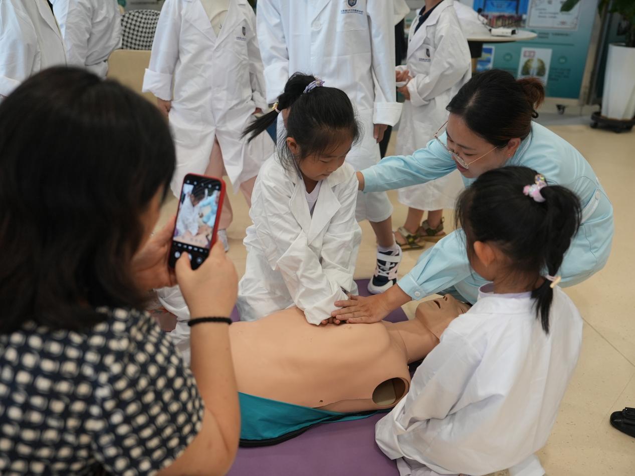 在了解了生命的诞生后,工作人员教给孩子们打针如何找血管。工作人员先给孩子们讲解了人体血管的基本分布和特点,然后通过现场模拟演示,让孩子们直观地看到如何在手臂上准确找到血管。孩子们个个跃跃欲试,在工作人员的耐心指导下,小心翼翼地用模拟道具进行操作。这个环节不仅让孩子们掌握了实用的生活技能,还培养了他们的观察力和动手能力。
