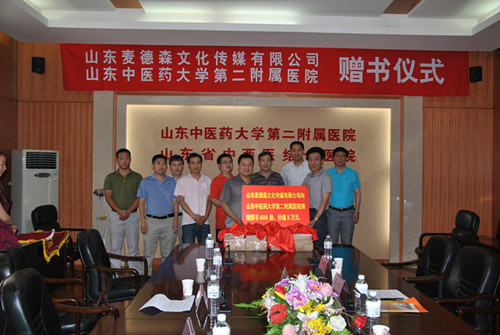 献拳拳真情,情归母校;赠缕缕书香,香飘杏林。7月16日,山东麦德森文化传媒有限公司董事长王勇带领公司高层管理人员为母校山东中医药大学第二附属医院捐赠医学图书。活动以“心系母校,感恩回馈”为主题,共捐赠医学图书100余种,共计600余册,价值8万余元。