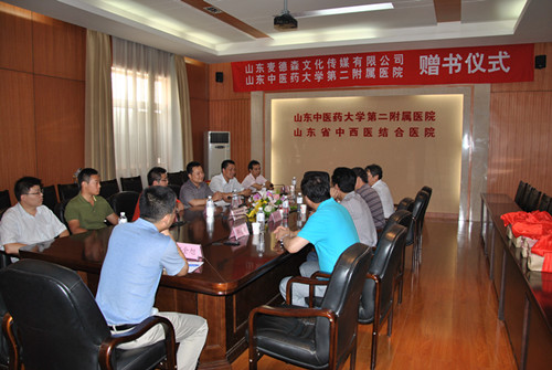 活动会议在上午10点举行,由二附院副院长李子峰主持。二附院葛院长在会上发言,适逢山东中医药大学第二附属医院迈向省内最大规模的综合性中西医结合医院之际,麦德森文化传媒和王董事长的图书捐赠犹如雪中送炭,为医院的广大医务工作者,特别是那些致力于西为中用的工作人员能够近距离接触中医的前沿知识提供了便捷渠道。葛院长还着重介绍了二附院近年来在党和国家领导的关怀下、在社会各界友人尤其是毕业学子的关心与支持下,医院在眼科、康复医学、生殖医学等重点学科所取得的国内领先的科技成果,特别提到了医院在中西医结合方面所做的重大努力。