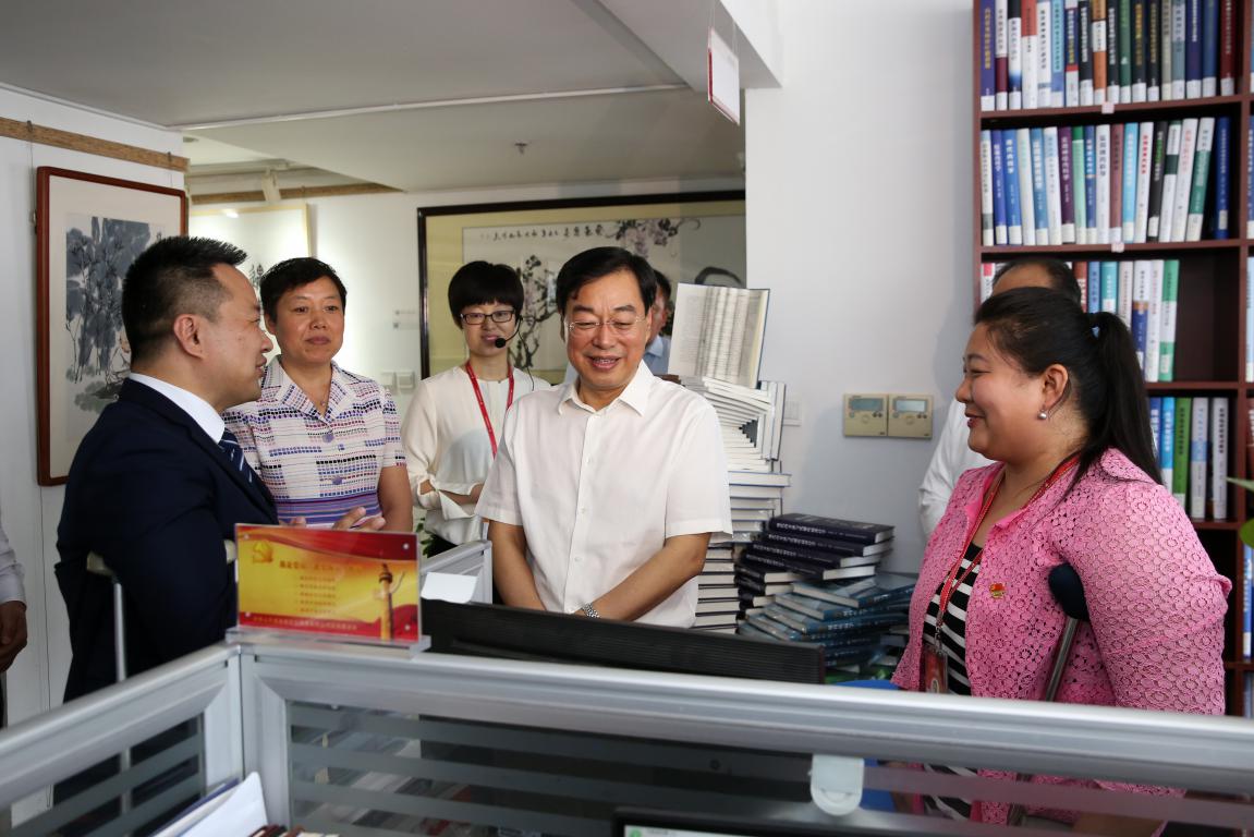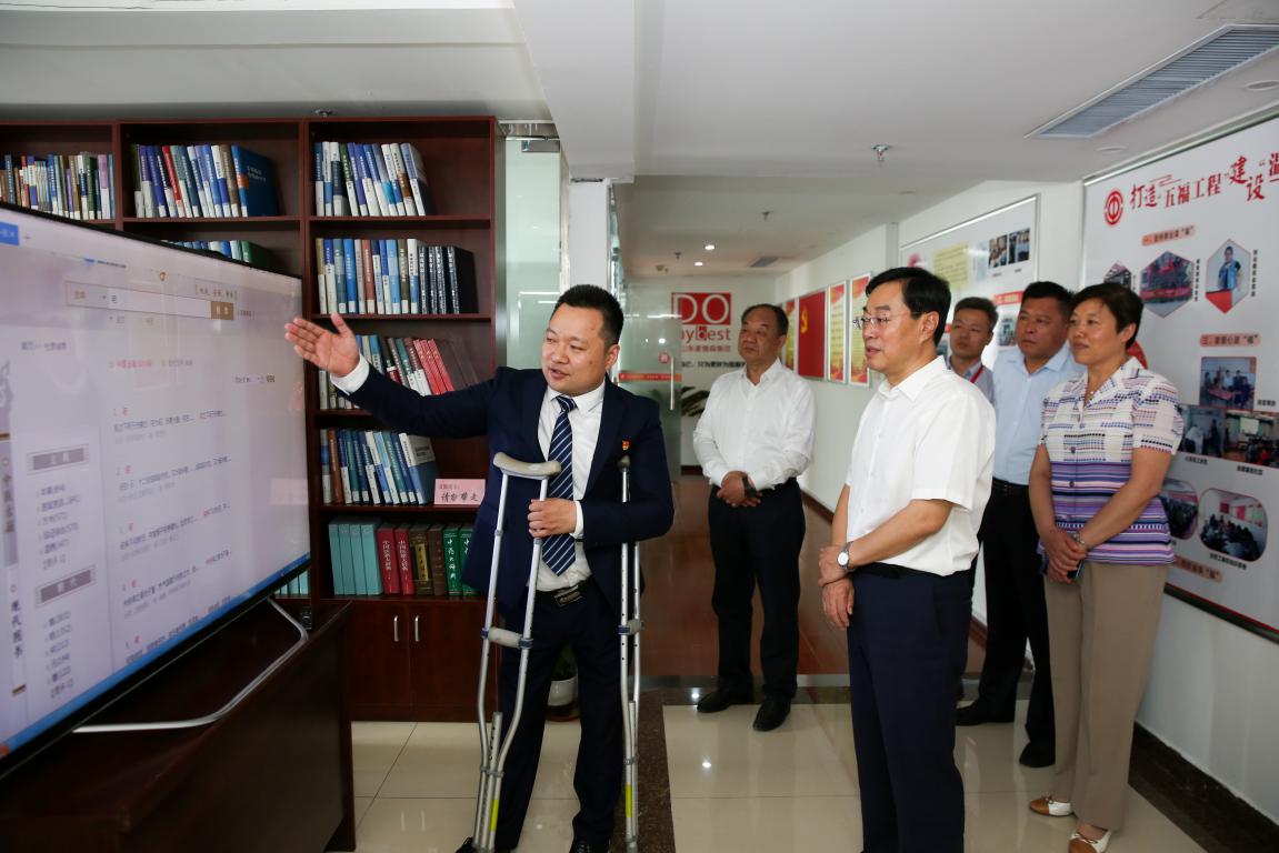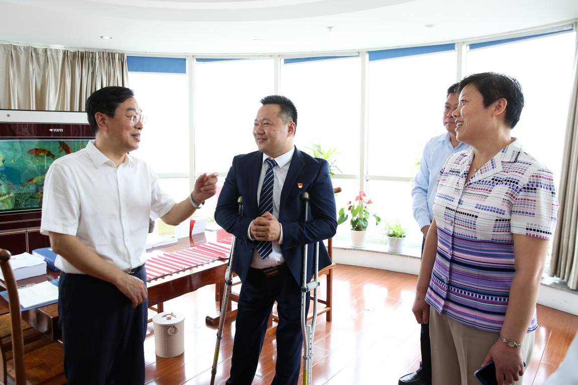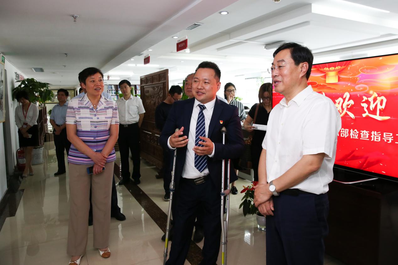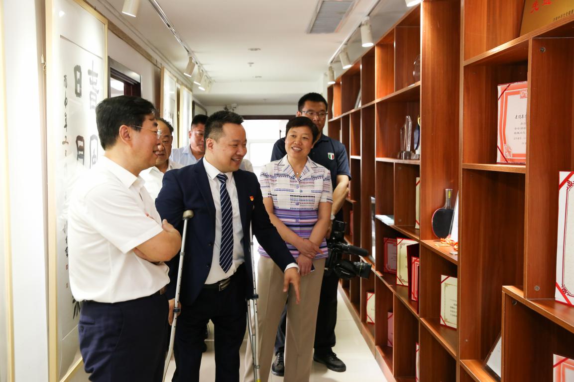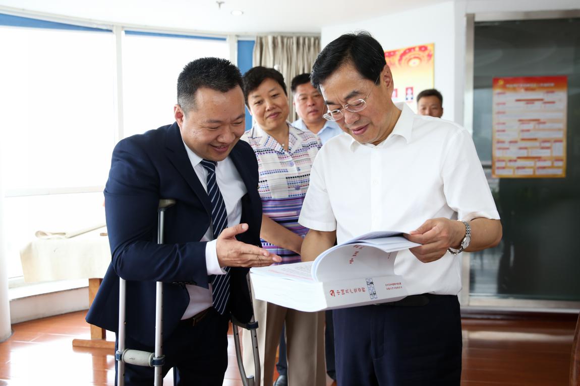 在王勇董事长的全程陪同下,杨东奇部长对公司整体业务发展及各方面建设情况进行了解,并对江南在线注册党建、中医传统文化传承以及残疾人事业发展等内容进行了深入重点视察。