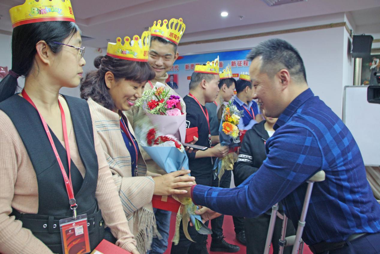 我集团党支部书记、董事长王勇主持并进行讲话。他说,今天是很有纪念意义的日子,是我们伟大领袖毛主席诞辰125周年纪念日,要缅怀他老人家的的丰功伟绩,感恩他带给我们的幸福生活。随后,他对2018年大家辛勤的工作给予了肯定,感谢了每一位员工的付出和努力,并为“寿星们”送上祝福。