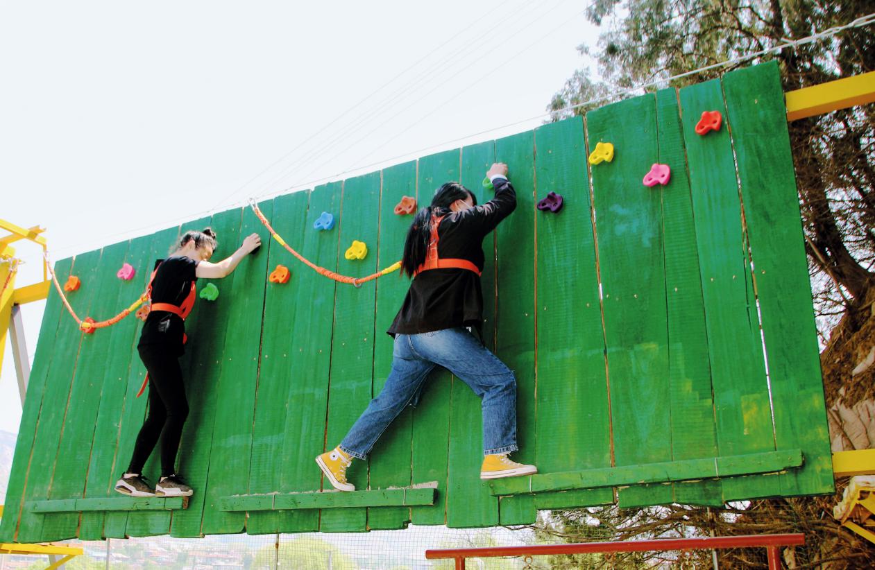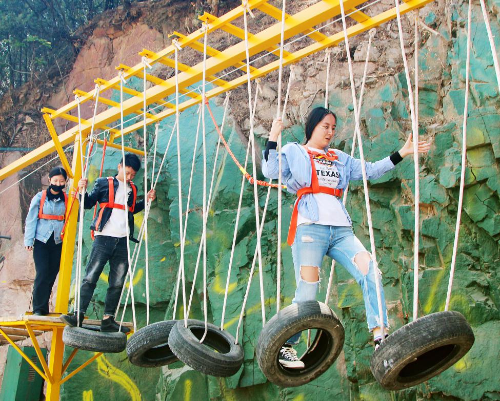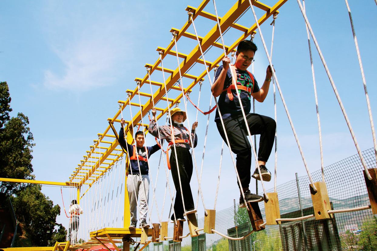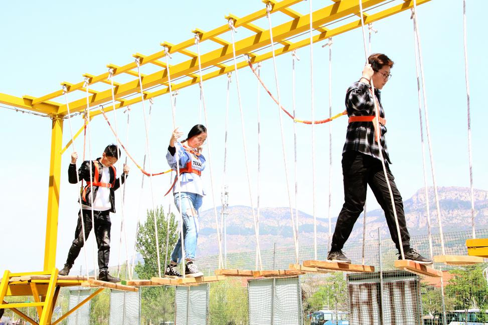 下午2点,高空行走、射箭、枪爆酒瓶、拔河、撕名牌、剪刀石头布等娱乐性活动轮番上阵。其中,高空行走项目最具挑战性,参与者不仅要克服高空恐惧,还要集中精力保持身体平衡,尽管难度很大,但没有一个人选择退缩,全部顺利完成任务。下午的项目激发出了大家的极限,让大家对于敢于拼搏、不怕困难有了更深刻的体会。