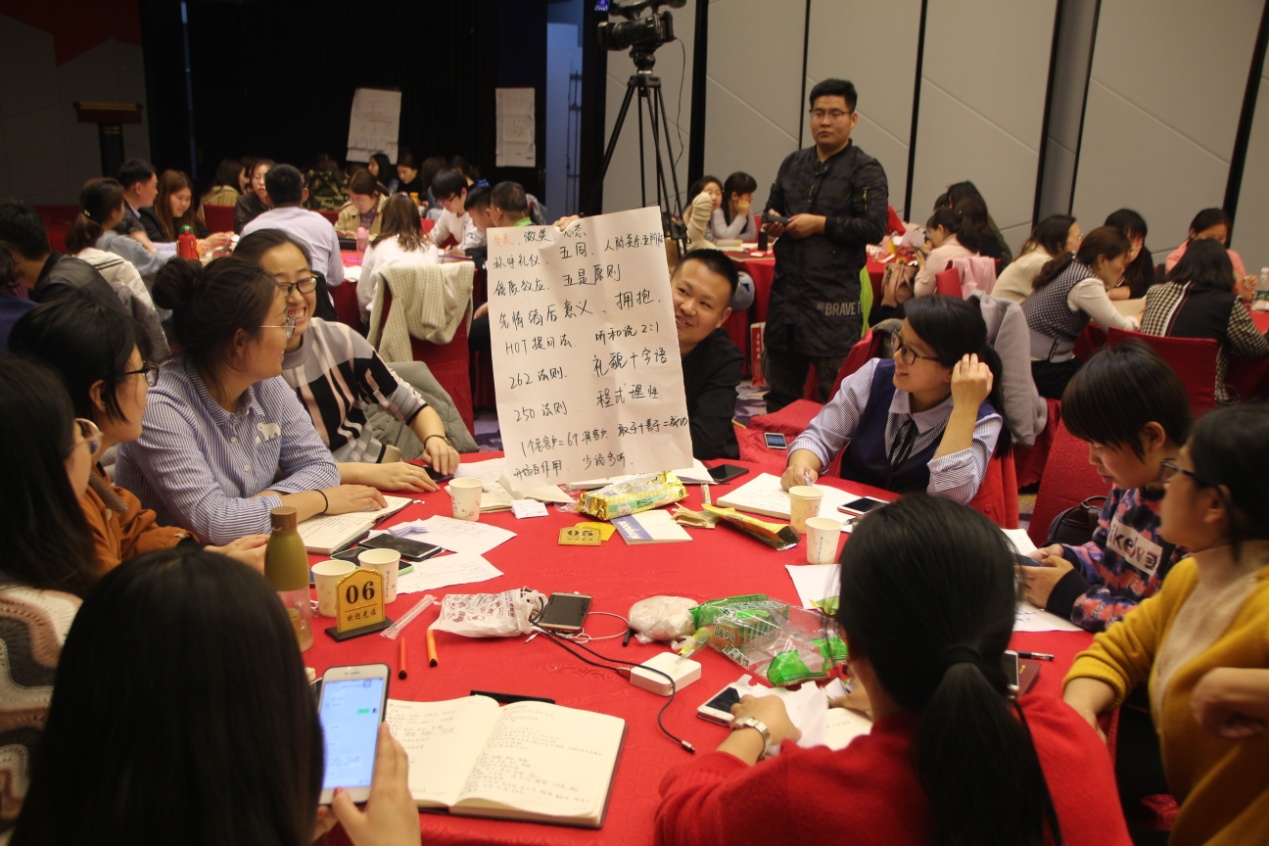 本次培训,刘老师通过“准备”“建立信任”“挖掘潜能”“成交技巧”“售后服务”五个方面内容的讲解,帮助学员们进行了全面的突破和自我蜕变,全程8个小时。