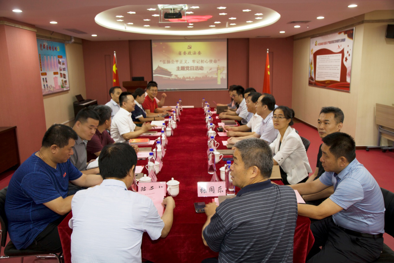 随后,山东省委政法委办公室党支部全体党员与“全国自强模范”代表、“中国青年五四奖章”获得者、我集团党支部书记王勇博士等集团代表在党群活动室共同开展主题党日座谈会。