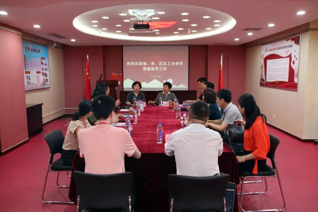6月19日,山东省总工会基层工作部部长姜卫红等省、市、区各级总工会领导莅临我集团调研集团工会建设工作并召开座谈会。受集团党支部书记王勇博士的委托,集团党支部副书记桑守正、总经理李校伟、工会副主席、大医学事业部总经理王龙田、财务总监杨艳春陪同调研。