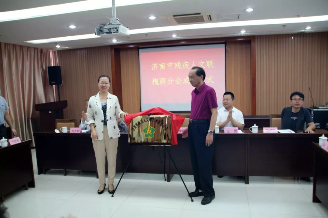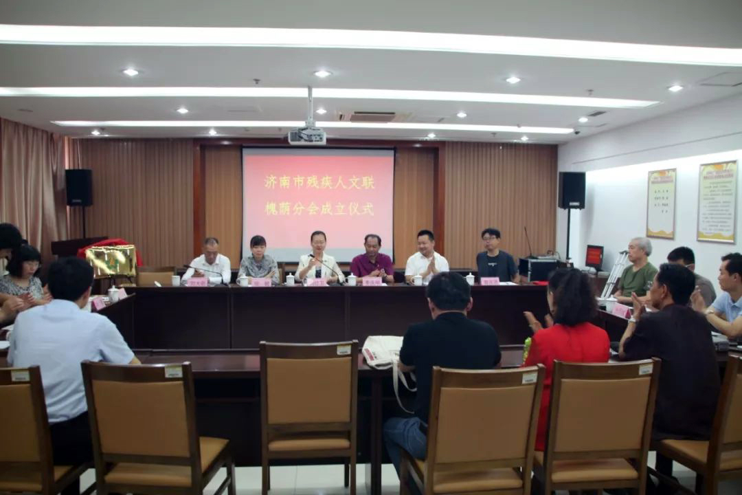 7月9日,“济南市残疾人文联槐荫分会”在槐荫区文体中心会议室举行成立仪式,济南市残联党组成员、副理事长刘红卫,市残联宣文处处长张敏,市残联宣文处副处长刘大新等领导同志出席仪式。槐荫区政协副主席、区残联理事长李庆甲主持仪式。济南市残疾人文联主席、我集团党支部书记王勇博士出席仪式并讲话。