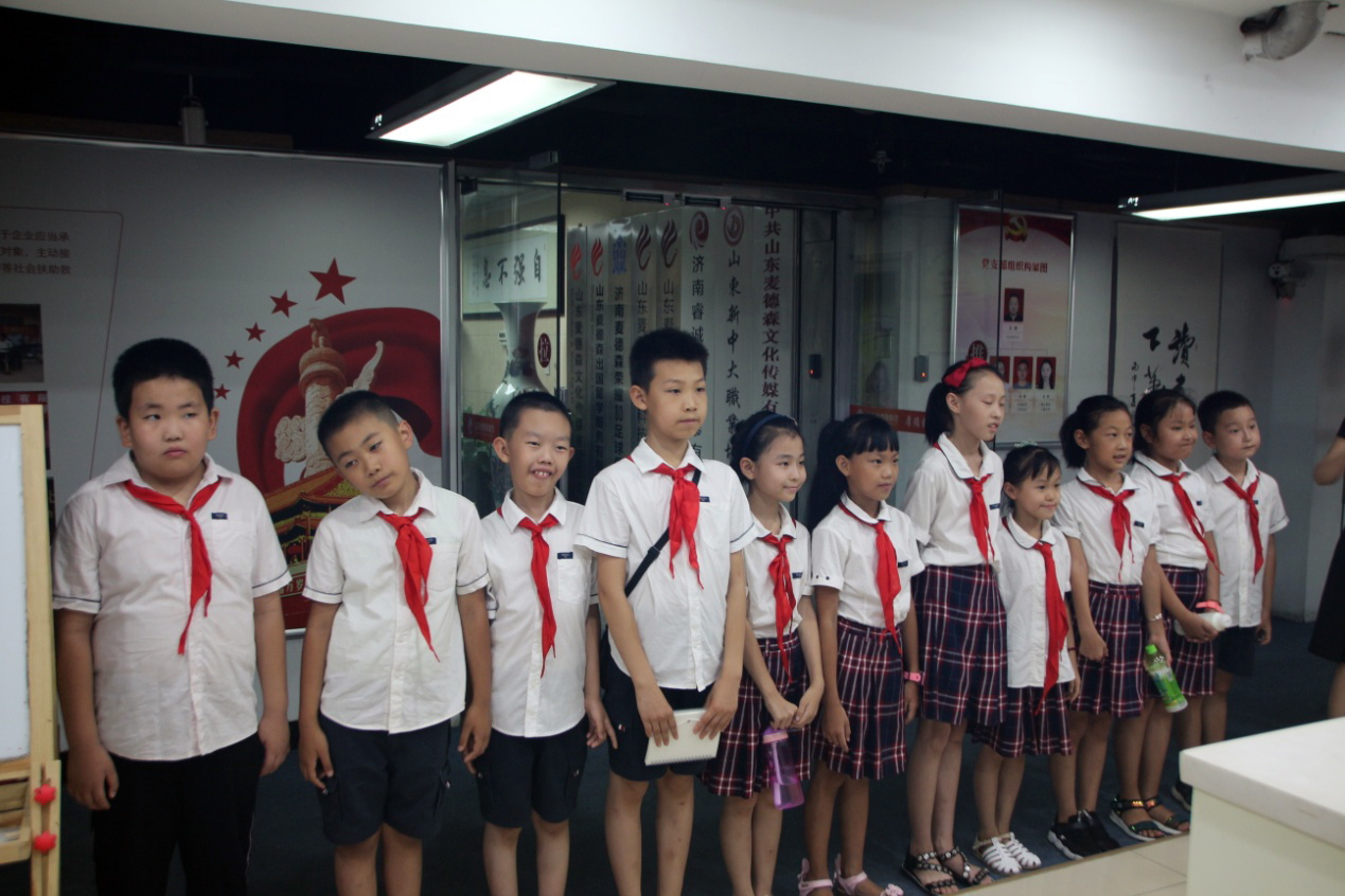 下午14时,济南市解放路第一小学新四(1)中队“泉美小队”少先队员们率先抵达麦德森总部,开展“红领巾寻访”活动。