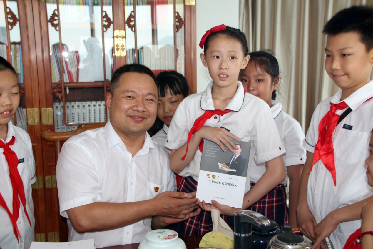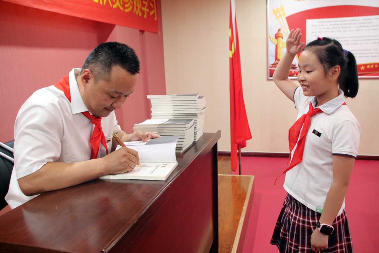 分享结束后,王勇博士将自己的传记赠送给每一位少先队员,并勉励大家,多读书、好读书、读好书,在读书中汲取知识,在读书中茁壮成长。
