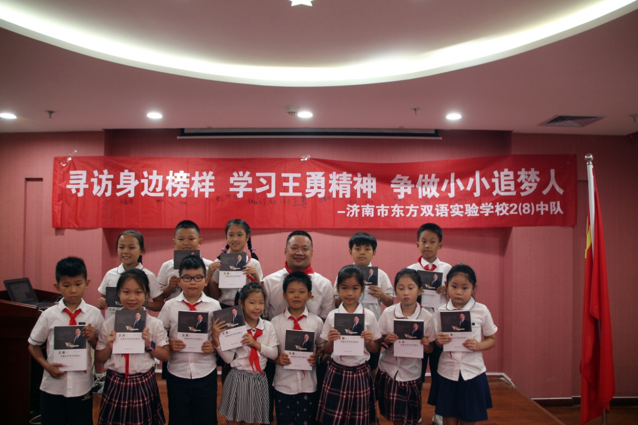 16时,济南市东方双语实验学校二(8)中队少先队员们来到麦德森党群活动室,开展“寻访身边榜样、学习王勇精神、争做小小追梦人”主题活动。我集团党支部组织委员张园园主持活动。