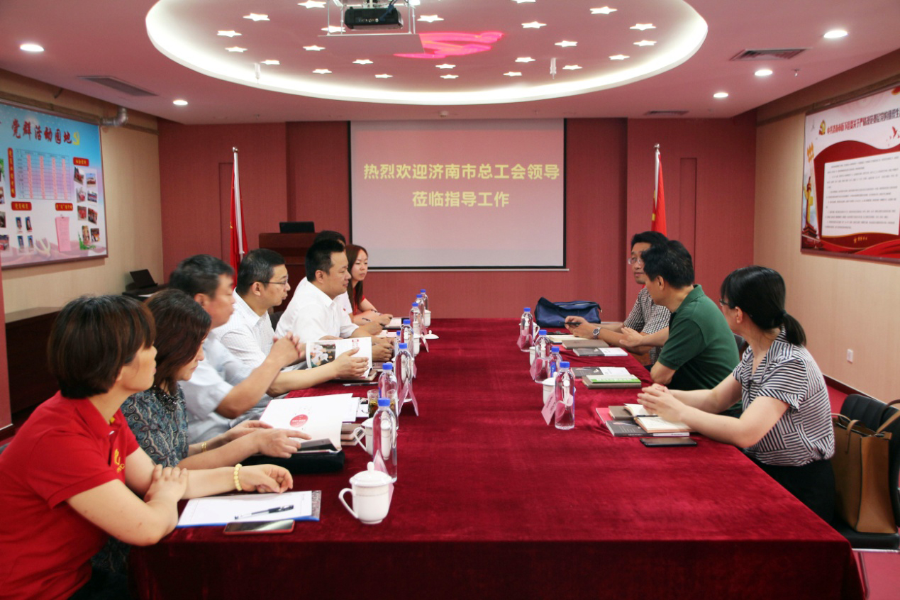 7月16日,济南市总工会党组副书记、常务副主席傅金峰等领导一行莅临麦德森总部调研集团工会建设工作并召开座谈会。集团党支部书记王勇博士等陪同调研。