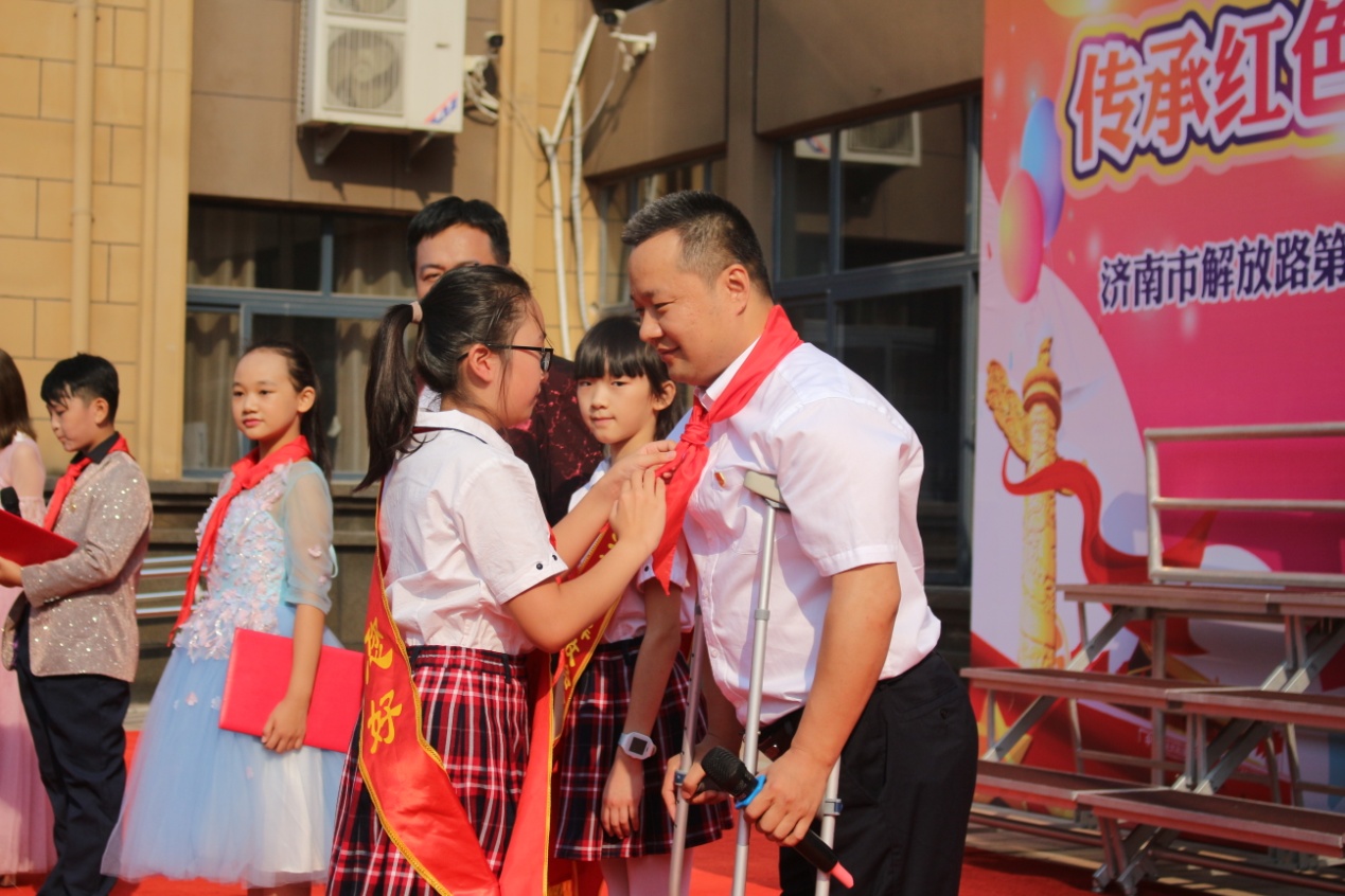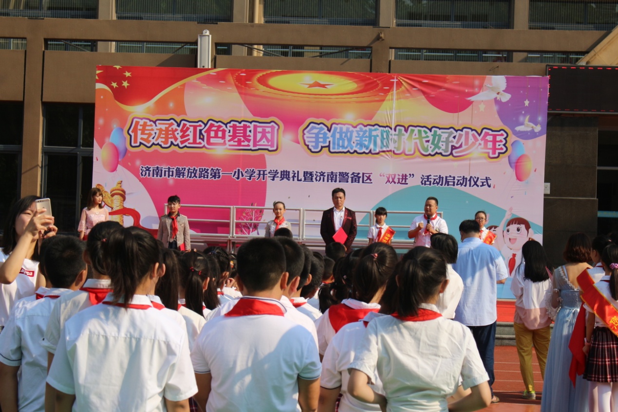 在嘹亮的国歌声中,“传承红色基因、争做新时代好少年” 济南市解放路第一小学开学典礼暨济南警备区“双进”活动启动仪式正式开始。王勇博士在开学典礼的讲话中勉励学生们立志高远、脚踏实地,早日成长为勇挑时代重任的栋梁之材。