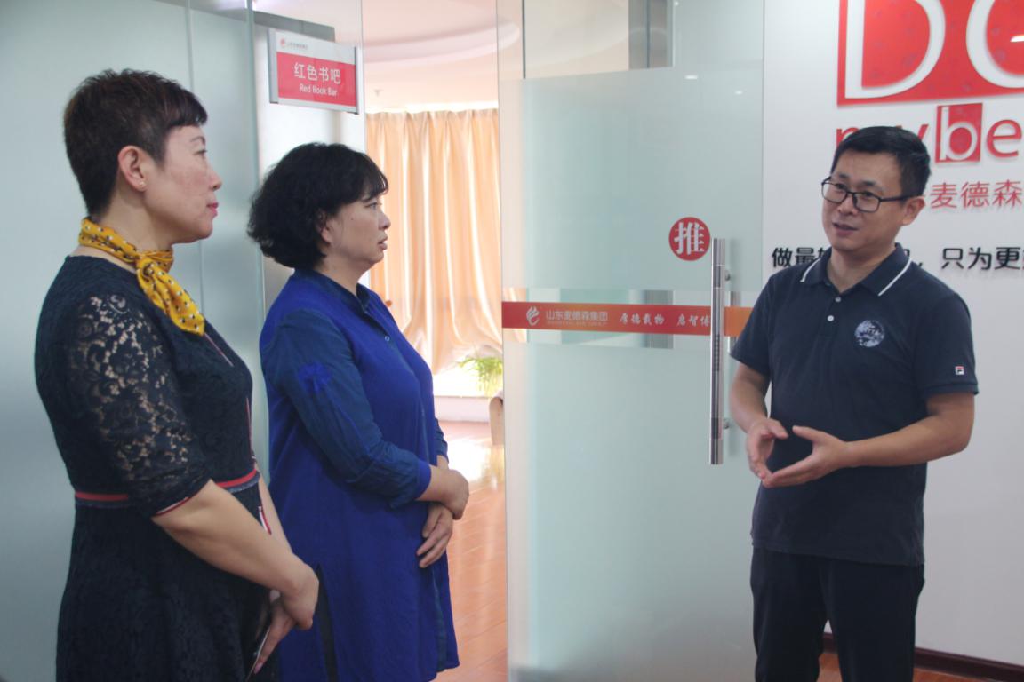 9月5日,历下区投资促进局副局长孙蕾、历下区燕山街道办副主任王冬梅一行莅临我集团,就集团企业文化建设工作进行调研指导。受集团党支部书记王勇博士委托,集团总经理李校伟等陪同调研。