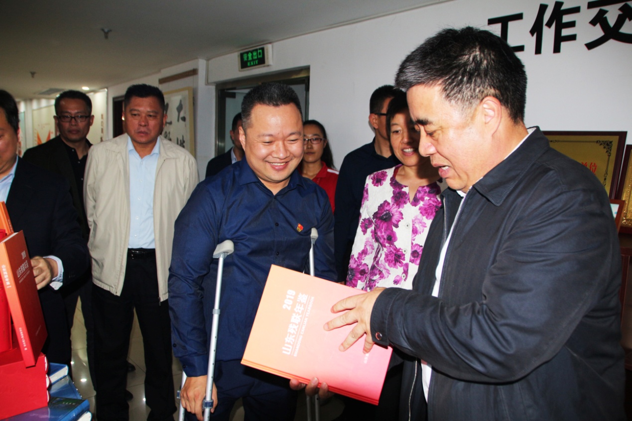 10月23日,中国残联党组成员、副理事长相自成,中国残联组联部副主任常征,中国残联组联部协会和社会工作处四级调研员黄北大,山东省残联党组书记、理事长邹斌芳,省残联组织部部长于惠东,济南市残联党组书记、理事长孙君涛,市残联组联处处长李宪波等领导一行莅临我集团调研残疾人工作。集团党支部书记王勇博士等陪同调研。