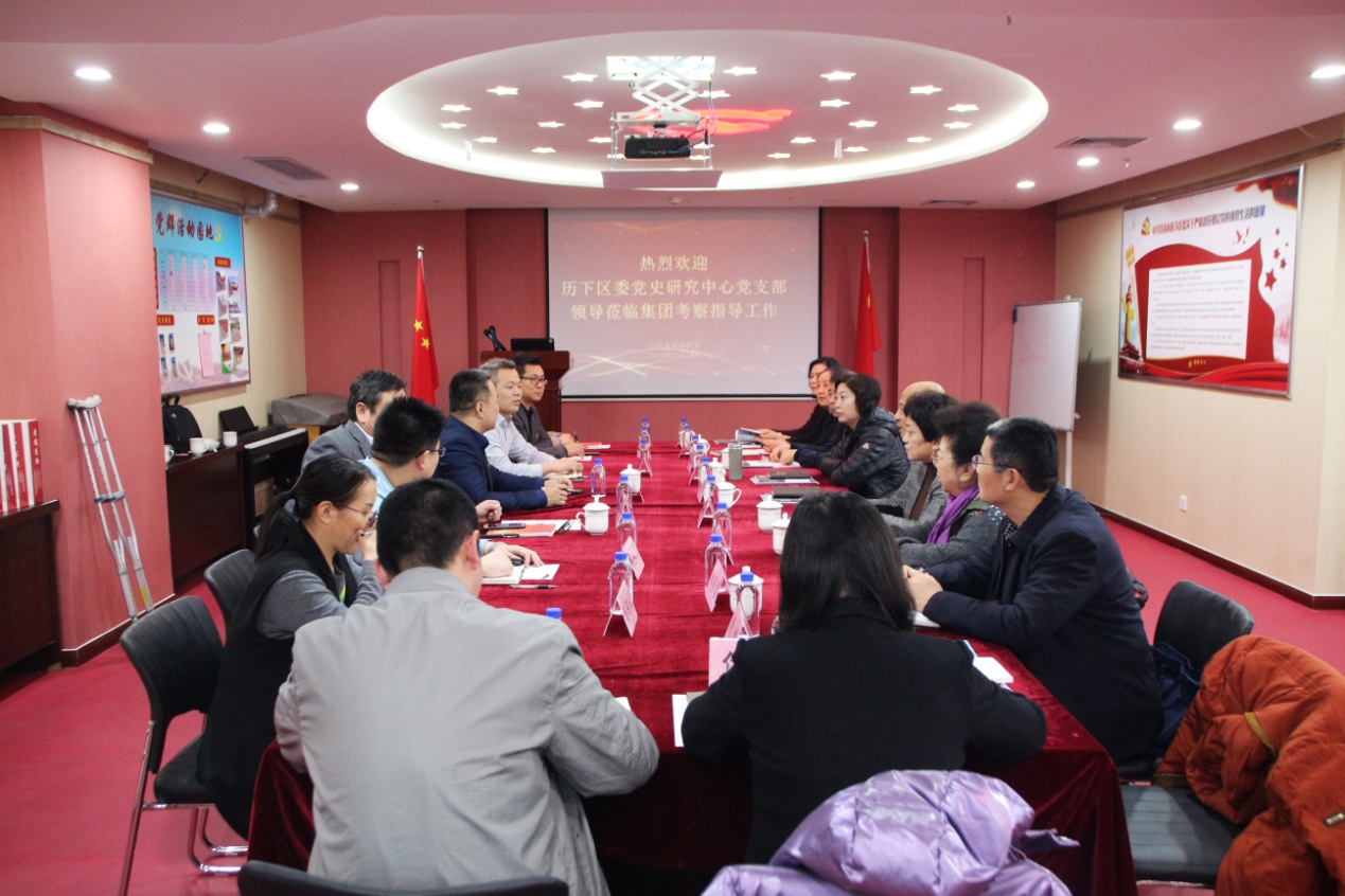 在王勇博士的陪同下,历下区区委党史研究中心党支部党员一行对我集团整体业务发展情况、党支部建设工作、残疾人事业发展等内容进行了深入了解。