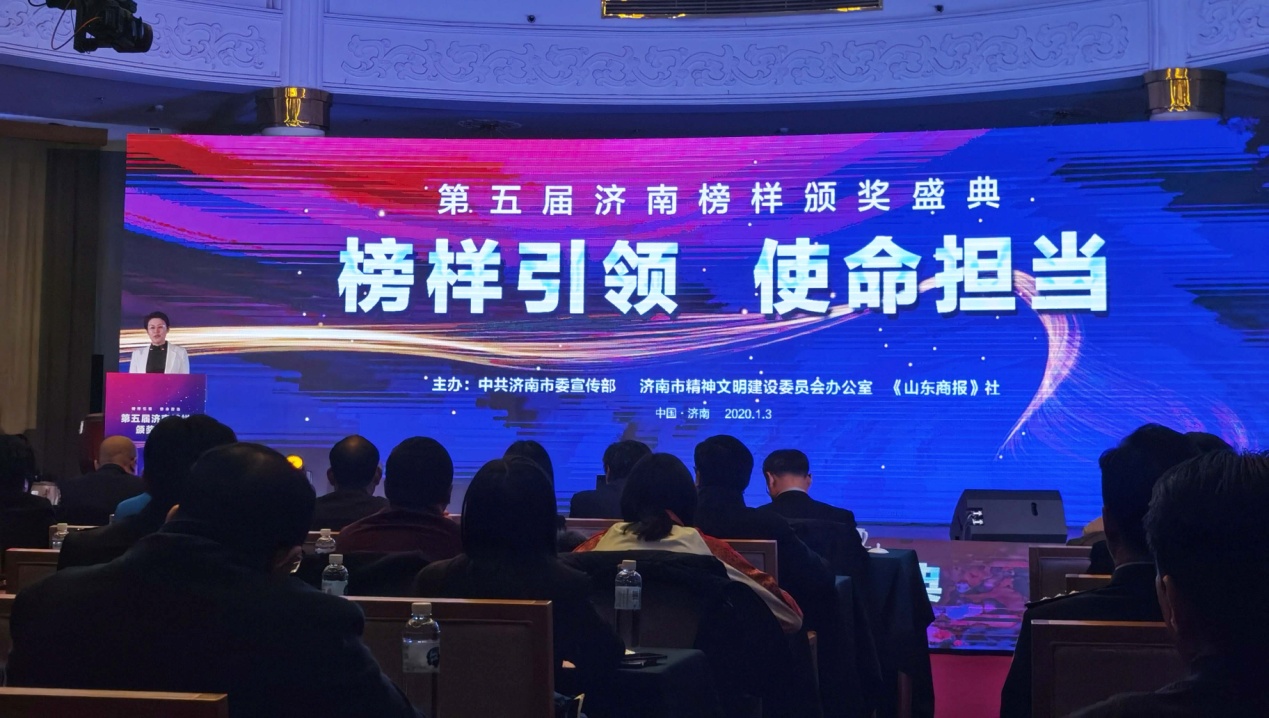 1月3日,由中共济南市委宣传部、济南市精神文明建设委员会办公室、《山东商报》社联合主办的“榜样引领、使命担当”——第五届“济南榜样”颁奖盛典在济南市南郊宾馆举行。