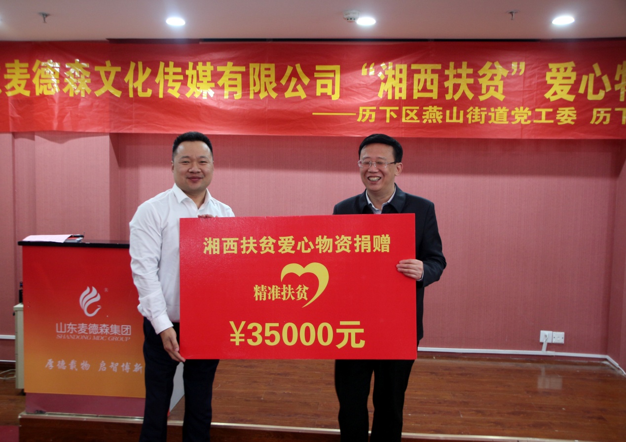 2019年,我集团积极响应燕山街道“精准扶贫行动”号召,积极参与“万企帮万村”扶贫活动,结对帮扶湘西州永顺县青坪镇洞坎河村,年内多次组织捐款捐物,并于3月下旬派员赴当地现场对接帮扶事宜。