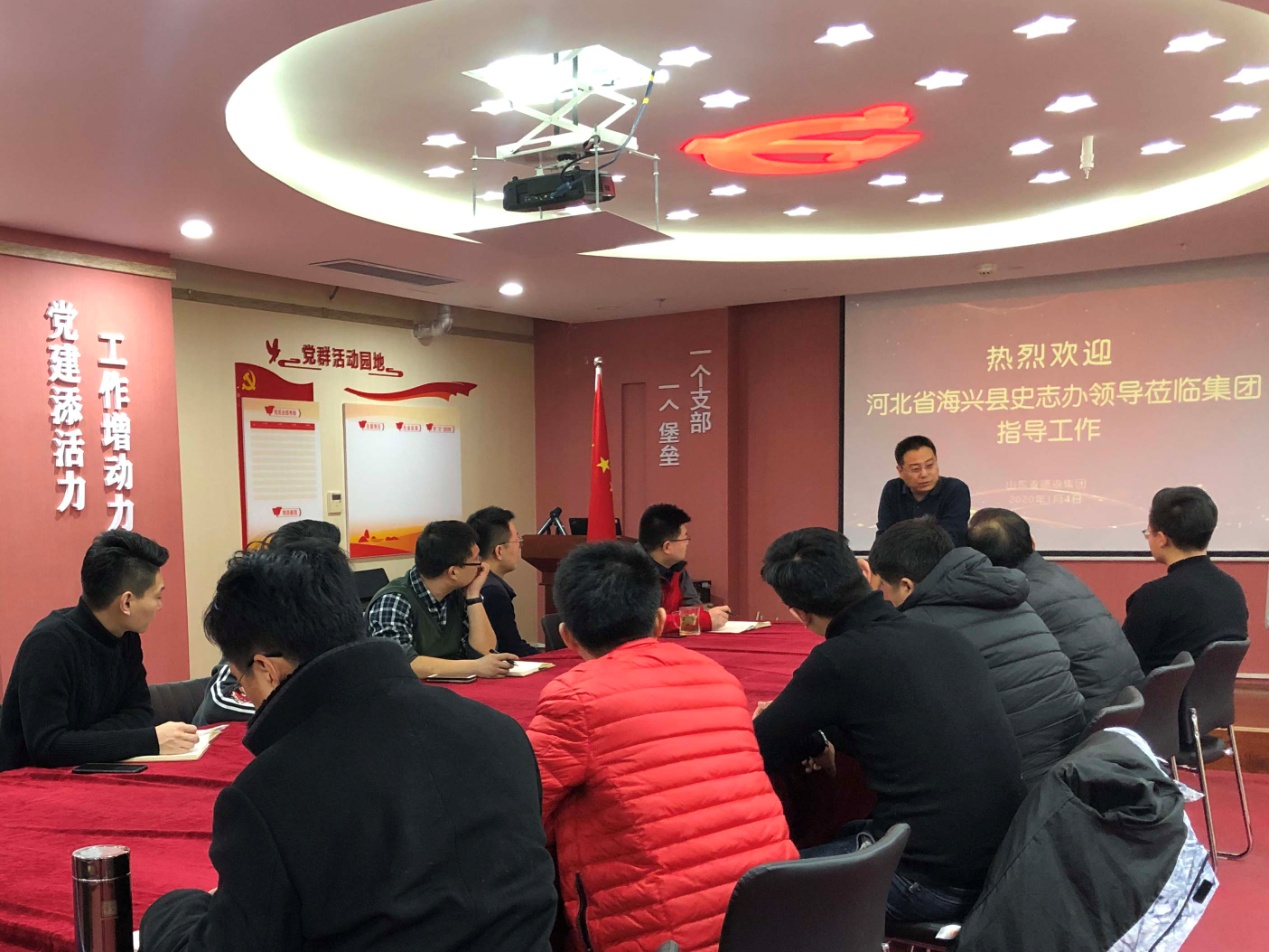 1月4日,沧州市海兴县县志办主任吴海龙一行来公司考察参观,受集团党支部书记王勇博士委托,史志事业部总经理张永华等陪同考察。