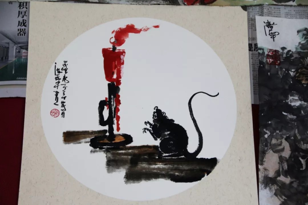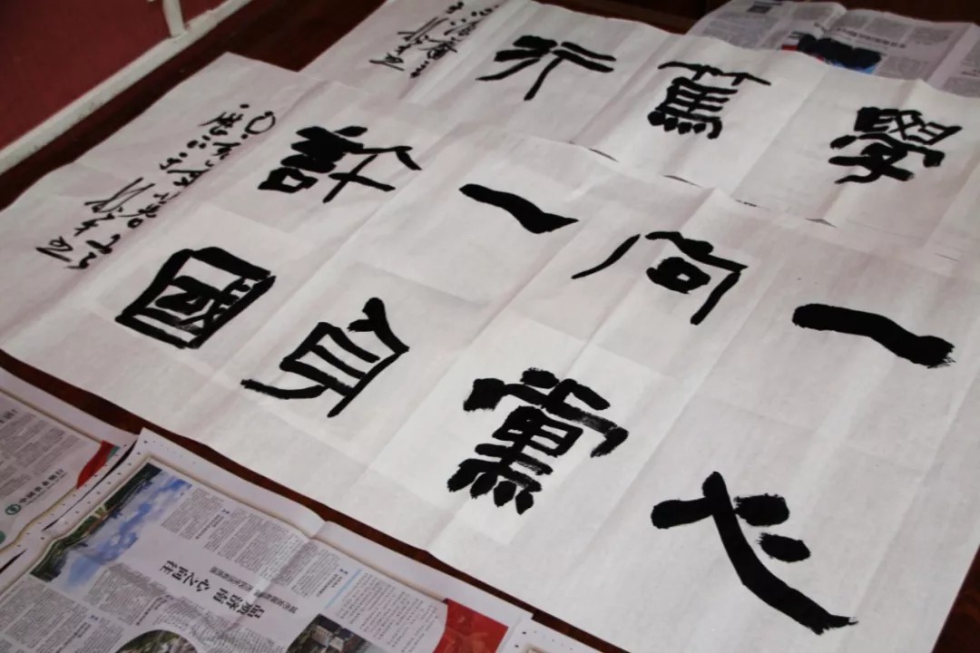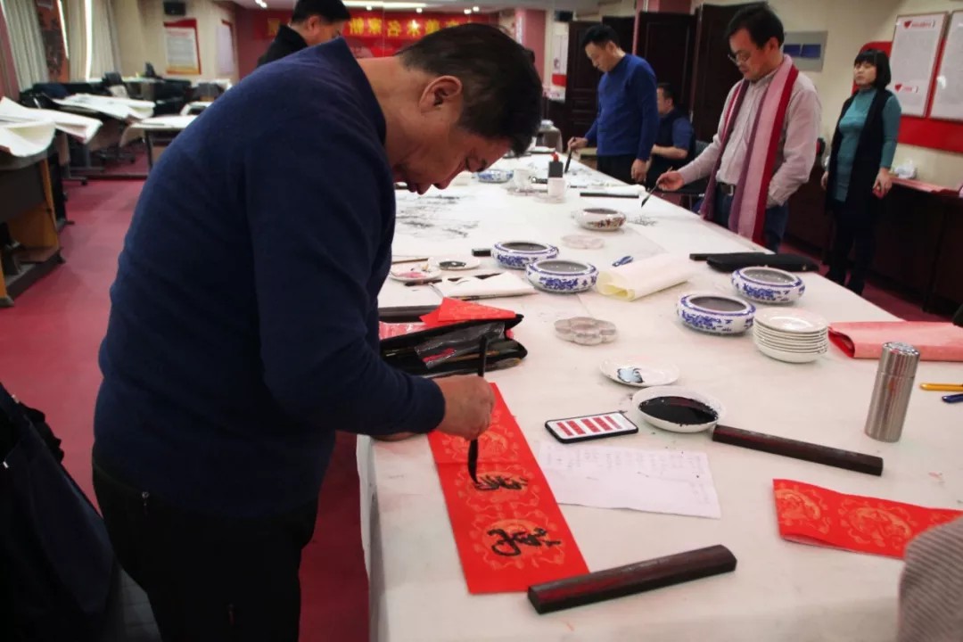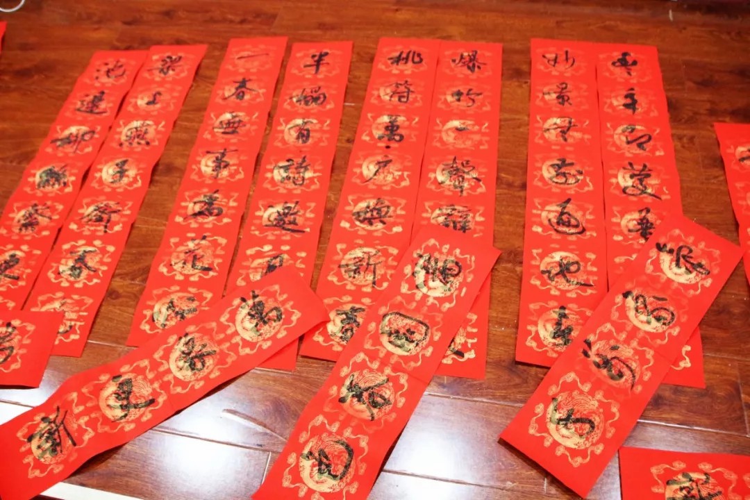 本次活动持续近4个多小时,书写对联、福字、书画作品百余幅。活动结束后,大家纷纷拿起书画“艺术品”合影留念。