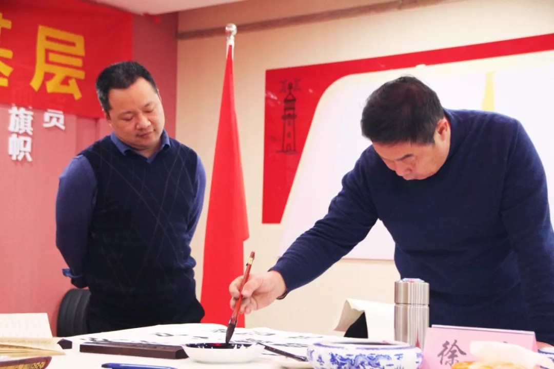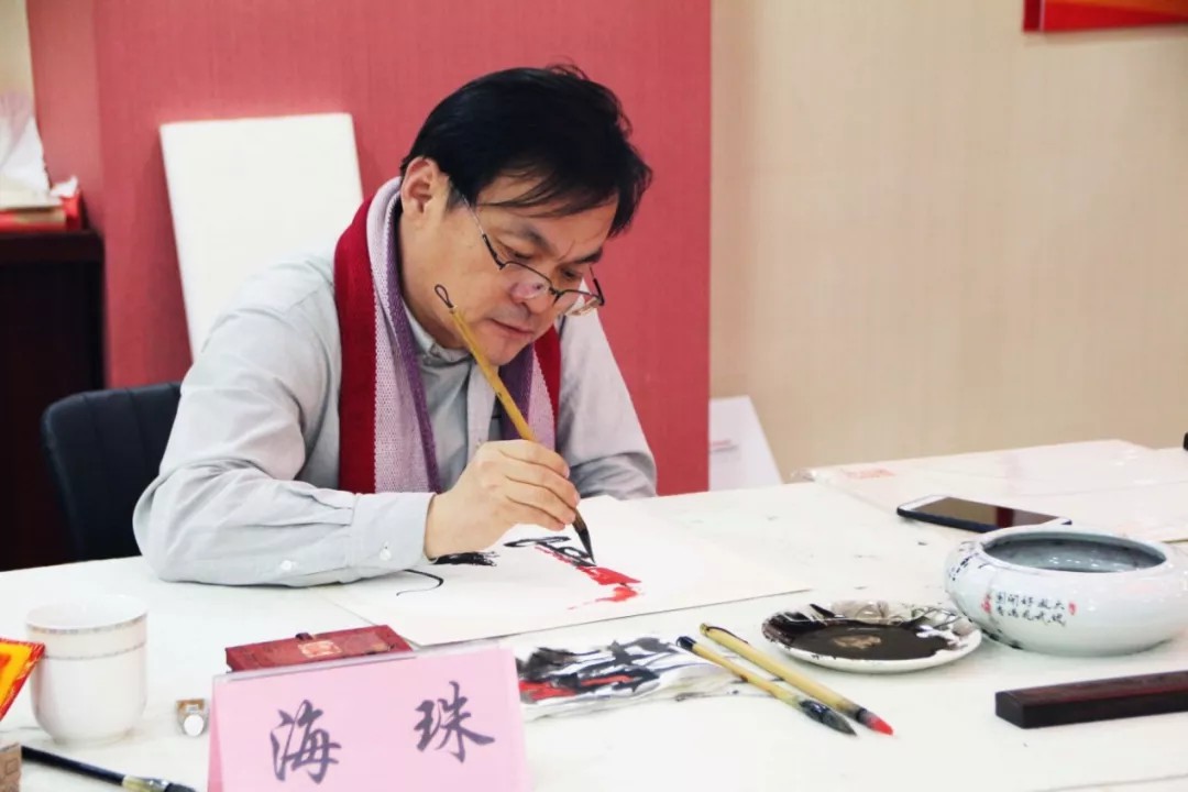 山东美术馆党支部书记柳延春,山东美术馆研究员、中国美协会员、山东美协理事张民生,中国书法家协会会员、山东省书协艺委会委员、济南市书法家协会副主席于振才等当代书画名家齐聚一堂,用手中的笔谱写最真挚的新春祝福。我集团党支部书记王勇博士、工会主席张晶华等参加活动。