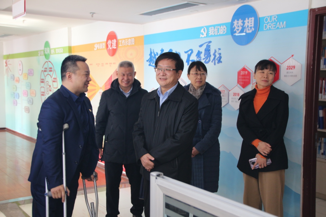 在王勇博士的带领下,调研组一行依次参观了集团企业文化墙、党建活动室、残疾人文化艺术长廊以及集团各业务职能部门办公区域,认真查看了集团党员突击队手抄党章、“三会一课”记录、公益活动材料等企业党建、公益项目工作材料,对我集团党建工作、社会公益工作给予高度评价。