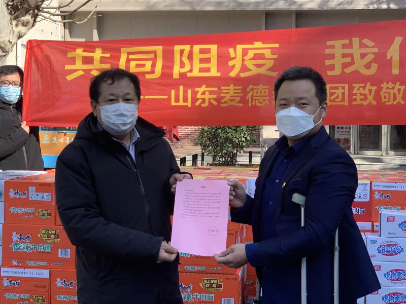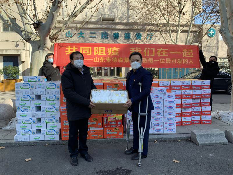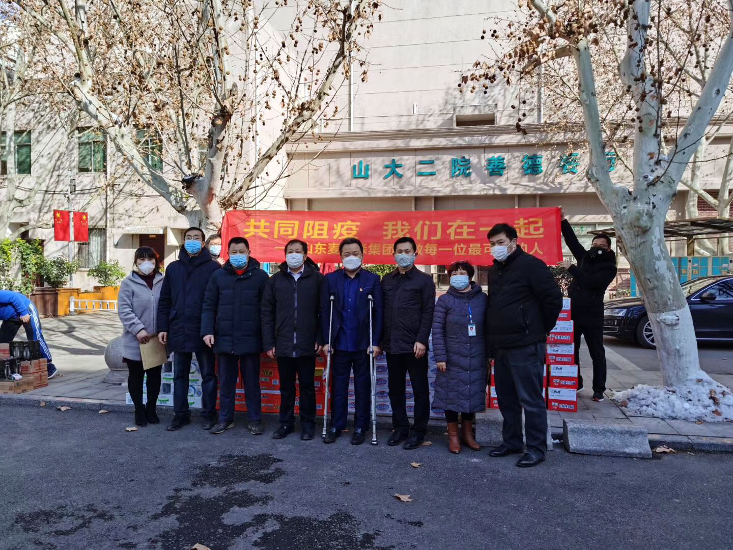 2月16日,我集团党支部书记王勇博士带领企业员工来到山东大学第二医院,向山大二院支援武汉的医务工作者们捐赠口罩等总金额六万余元的抗疫物资,并紧急发往山大二院医疗队援助的武汉光谷医院和黄冈一线,助力湖北前线疫情防控工作。