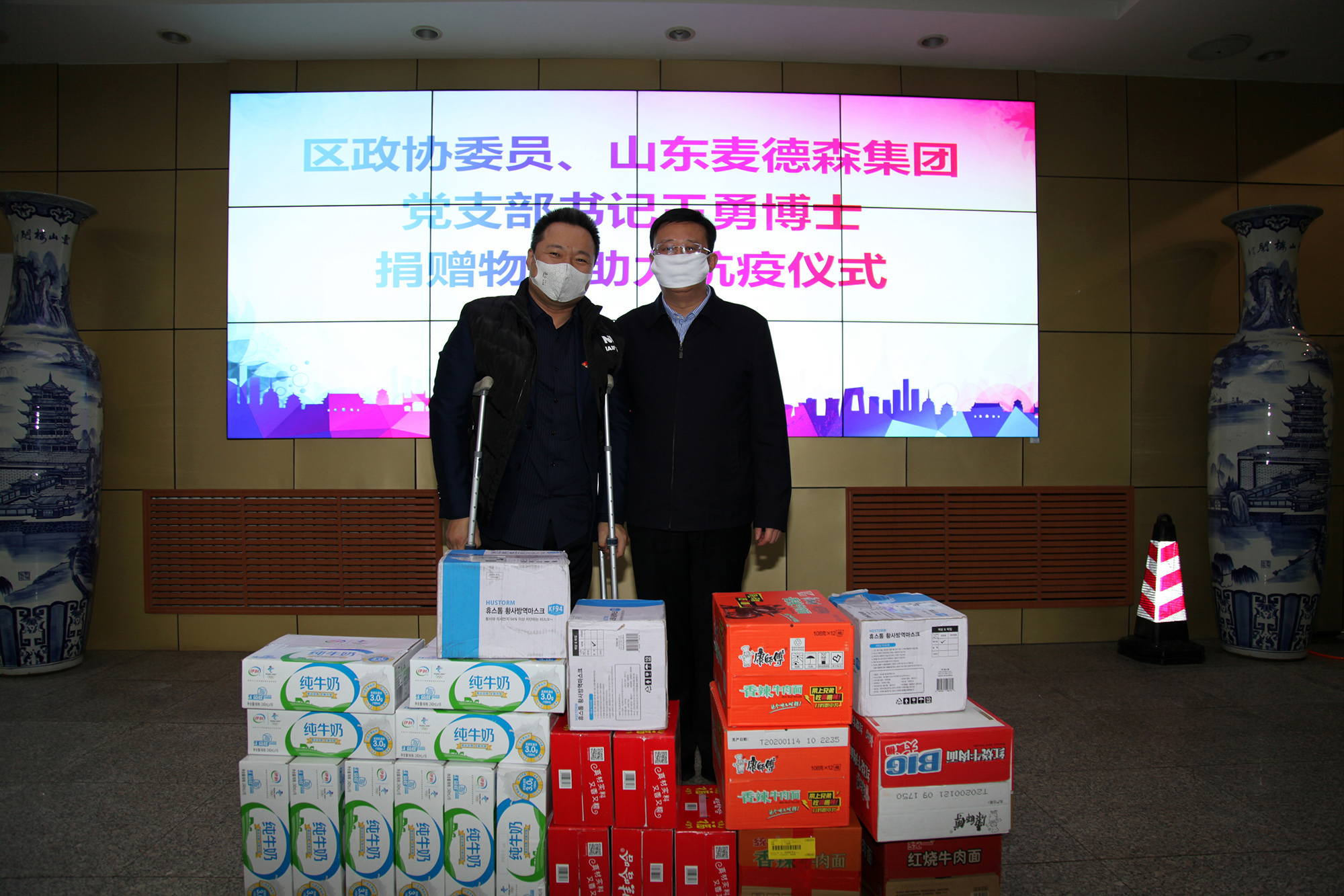 2月6日下午,我集团党支部书记王勇博士带领企业员工来到济南市历下区燕山街道,向街道捐赠口罩等总金额近1万元的抗疫物品,助力疫情防控。