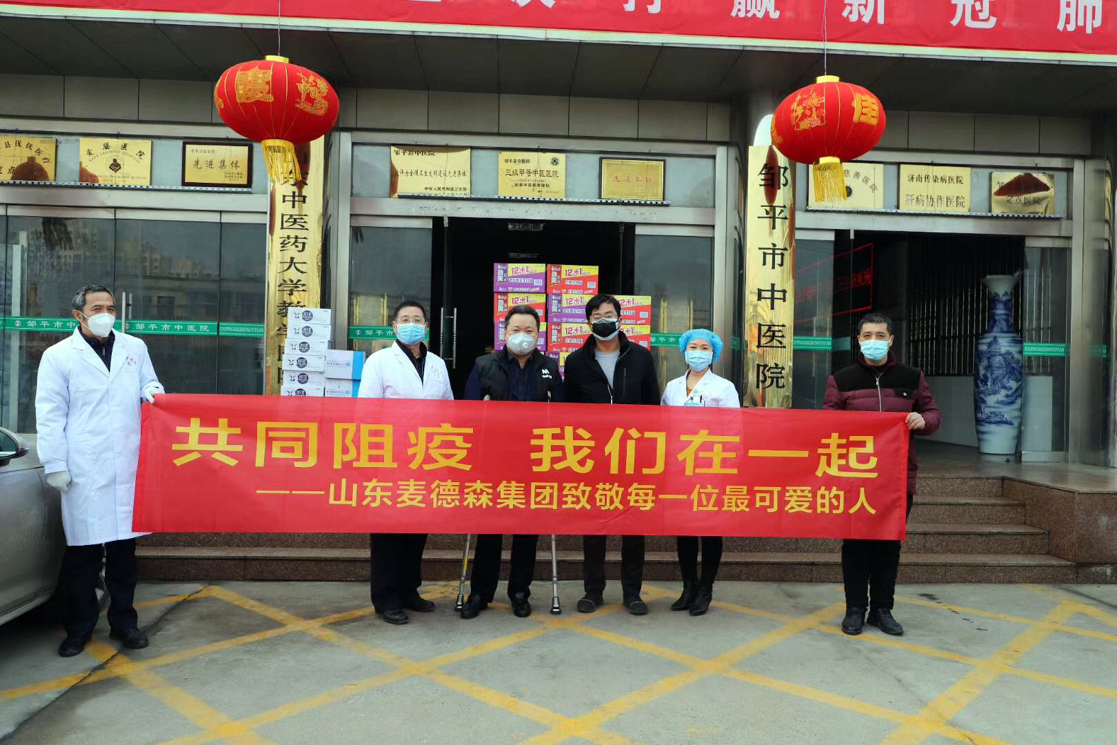 离开山东省中医药大学附属医院后,我集团党支部书记王勇博士带领企业员工不辞辛苦来到邹平市中医院,向医院捐赠医用外科口罩等价值两万六千元物资,助力疫情防控。
