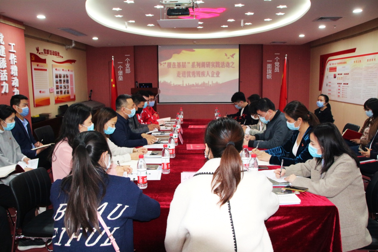 随后,省残联机关单位各位领导与“全国自强模范”代表、“中国青年五四奖章”获得者、我集团党支部书记王勇博士等企业代表在党群活动室共同举行“根在基层”系列调研实践活动座谈会。
