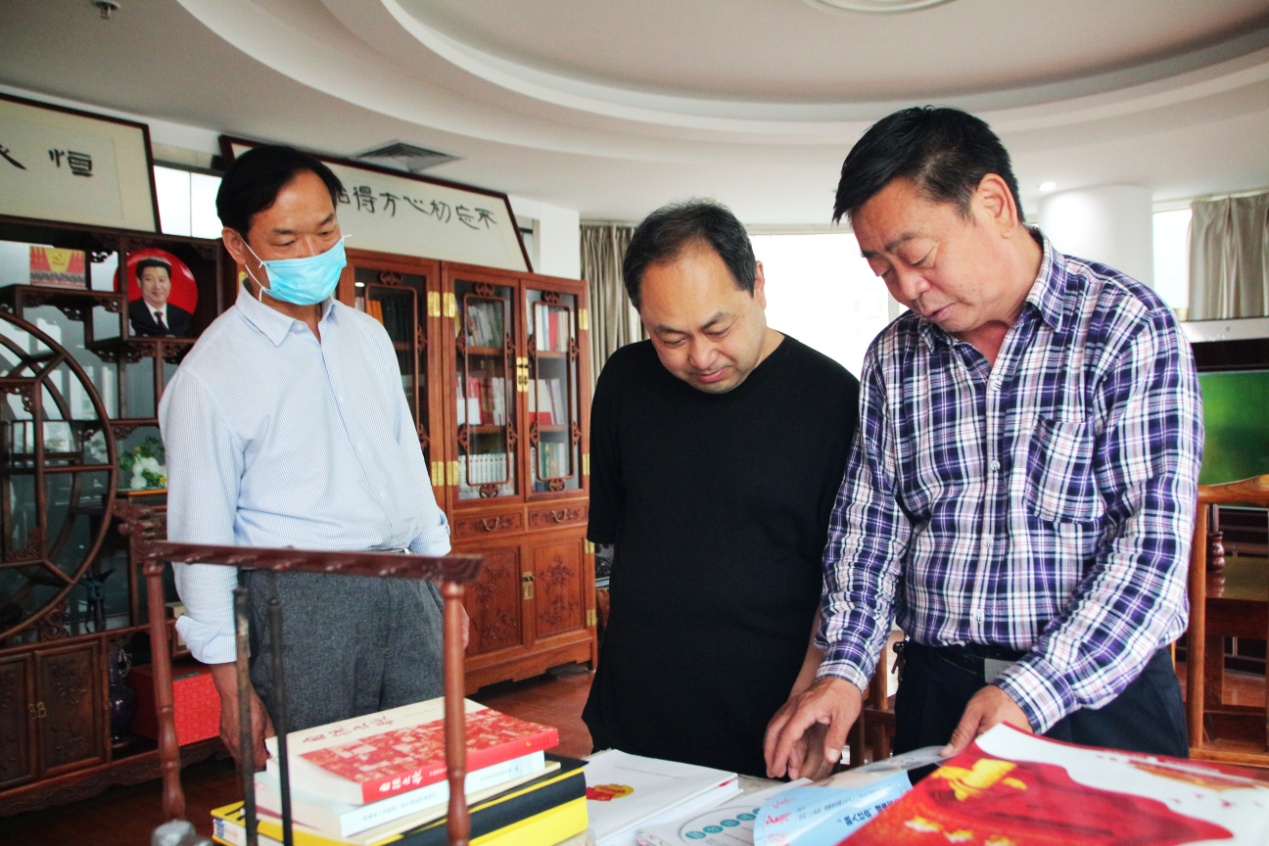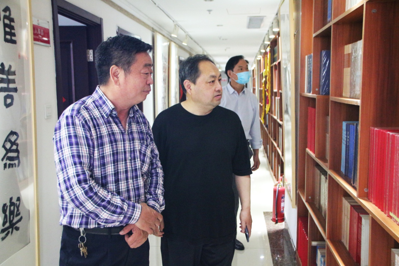 在桑守正的带领下,刘电波一行对集团企业党建工作和文化建设进行了观摩,对集团公司各业务职能部门进行了参观。详细查看了我集团的疫情防控及复工复产工作系列资料,以及我公司承印出版的地方志、年鉴等图书,对我集团“长鼓型”党建工作法以及党员突击队建设给予高度评价,对我集团史志编辑出版的业务能力与质量表示高度认可。