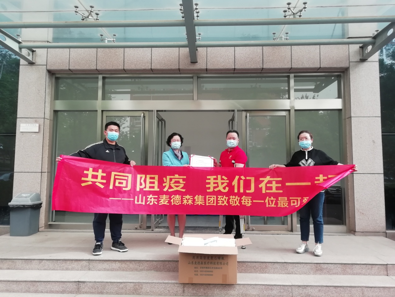 5月12日,我集团党支部书记王勇博士带领企业员工来到济南市历下区教育和体育局,向教体局捐赠口罩、消毒液等价值一万余元的爱心物资,助力全区教育主管部门、学校及广大师生顺利完成复学工作。